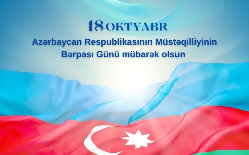 Qeyd edək ki, sabah Azərbaycanın Müstəqilliyin Bərpası Günüdür. 1991-ci il oktyabrın 18-də o zamankı Ali Sovet “Azərbaycan Respublikasının dövlət müstəqilliyi haqqında” Konstitusiya Aktını qəbul edib. Konstitusiya Aktında 1918-ci il 28 may tarixli İstiqlal Bəyannaməsinə və “Azərbaycan Respublikasının dövlət müstəqilliyini bərpa etmək haqqında” Azərbaycan Respublikası Ali Sovetinin 1991-ci il 30 avqust tarixli bəyannaməsinə istinad olunub və Azərbaycan Respublikasının Azərbaycan Xalq Cümhuriyyətinin varisi olduğu təsbit edilib.