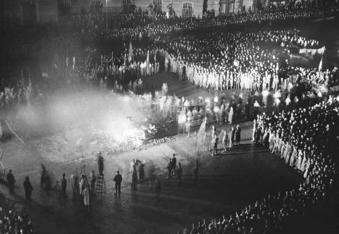 امروز نود و یکمین سالگرد آن شب شرمآور راسیستهای خود آریاپنداری است که دنبالهرو و مقلدانی نیز در ایران داشتند. سه سال پیش از آن فاجعه و براساس نوشتهی ناصر نجمی در صفحه ۲۱۴ کتاب «واسموس در میان دلاوران تنگستانی و قشقایی»، در حمله عمال رضاشاه به خانه صولتالدوله قشقایی، نه هزار جلد کتاب خطی و چاپی بسیار نفیس به یغما رفت و میراث تاریخی قشقایی نابود شد و همزمان با کتابسوزی آریاپنداران آلمان، در ایران نیز اسامی شهرها، روستاها و اماکن جغرافیایی غیرفارسها تحریف و به زور قانون تغییر داده شد و زبانی به زور مدرسه و دولت، در حلقوم کودکان هفت سالهای چپانده شد که فهمی از لغات و کلمات آن زبان نداشتند.